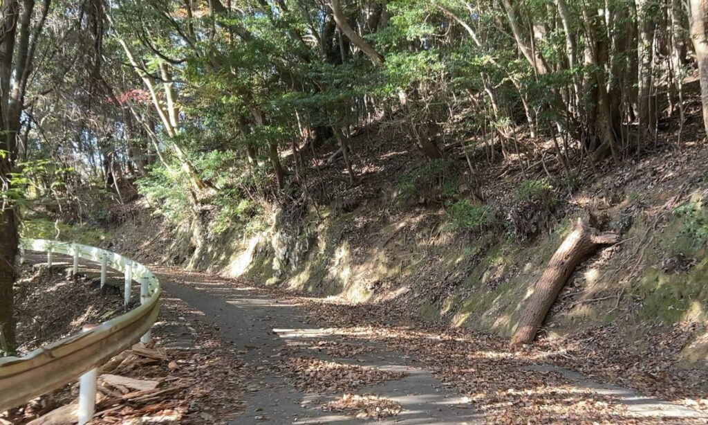 アスファルトは落ち葉に覆われほとんど見えません。