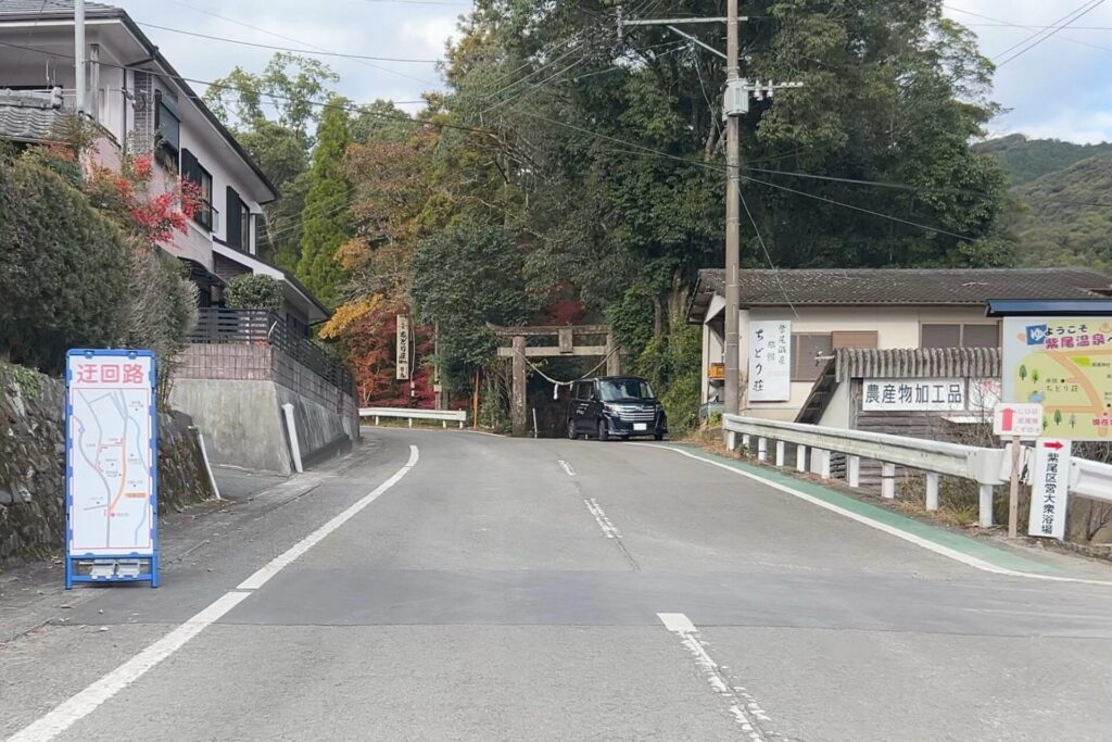 青看板によれば、途中で紫尾温泉を通過するみたい。