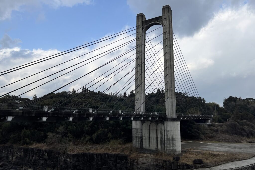 平成23(2011)年、老朽化した曽木大橋(のちに解体)に代わって架けられた橋で、その長さは204m・主塔の高さ約70mを誇るのだ!