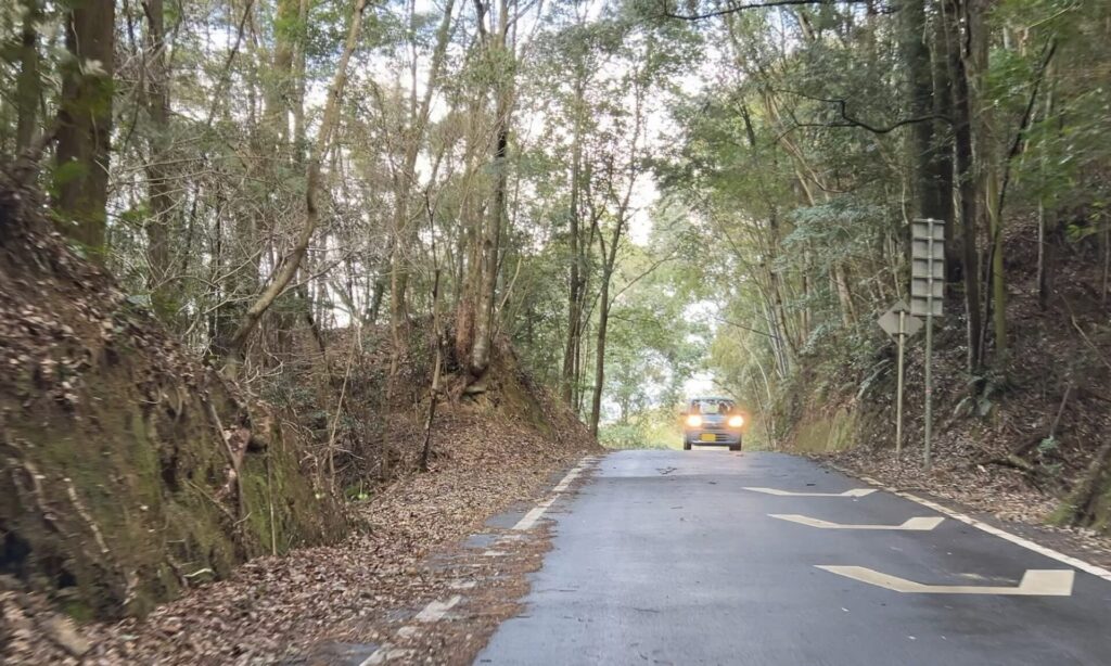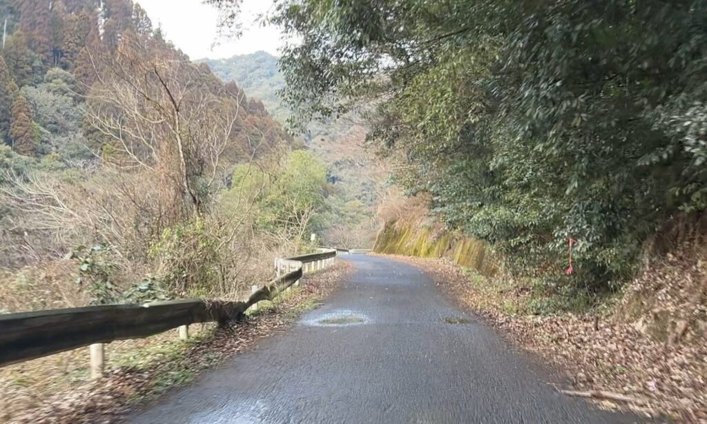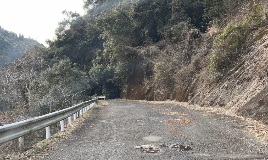通行自体が困難という訳ではないものの…全体的に道が狭く、特にさつま町側では路盤の凸凹・落ち葉や枝の堆積が顕著で、なかなかに荒れていた印象でした。