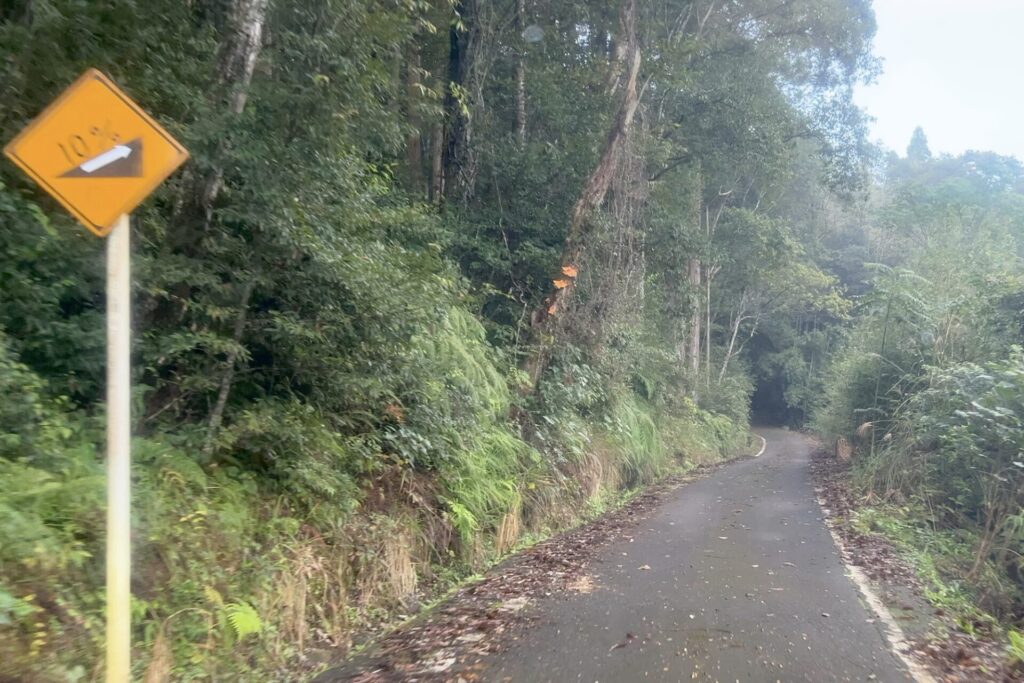 勾配は10%…車ならともかく、自転車で来ようものなら相当キツく感じる坂です。
