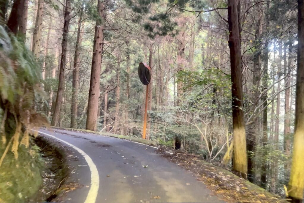 かなり見通しは悪いものの、カーブミラーが随所に設置されているのは幸いといったところ。