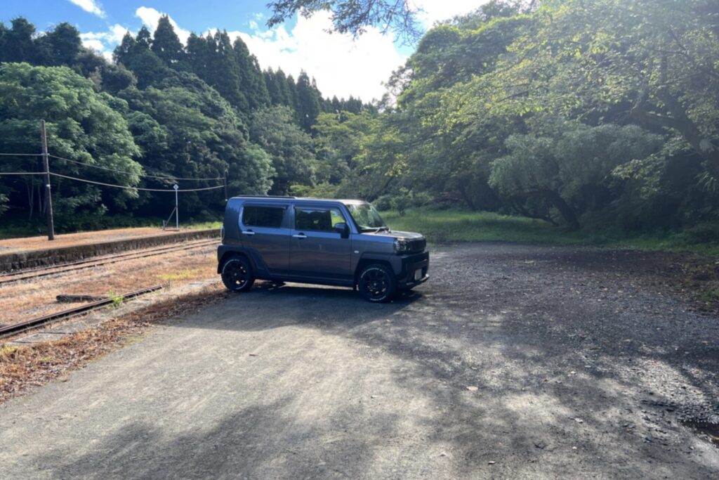 駅の脇には広めのスペースがあったので、少しの間停めさせてもらうことに。