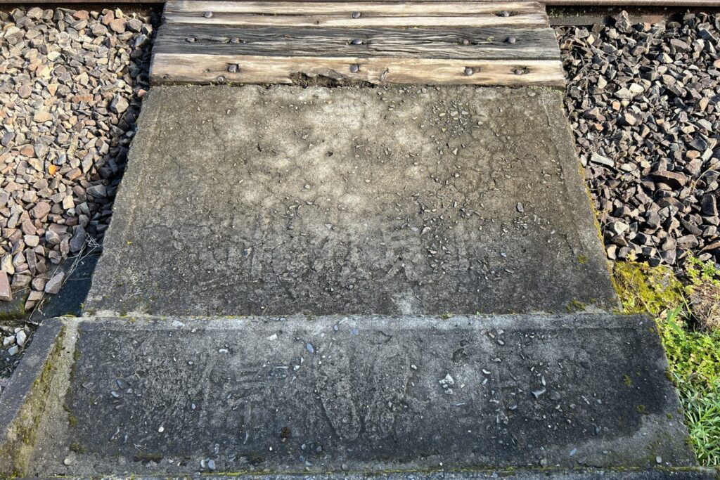 かなり風化が進んでいるが、辛うじて「止れ見よ」「停👣止」と書かれているのが見えた。