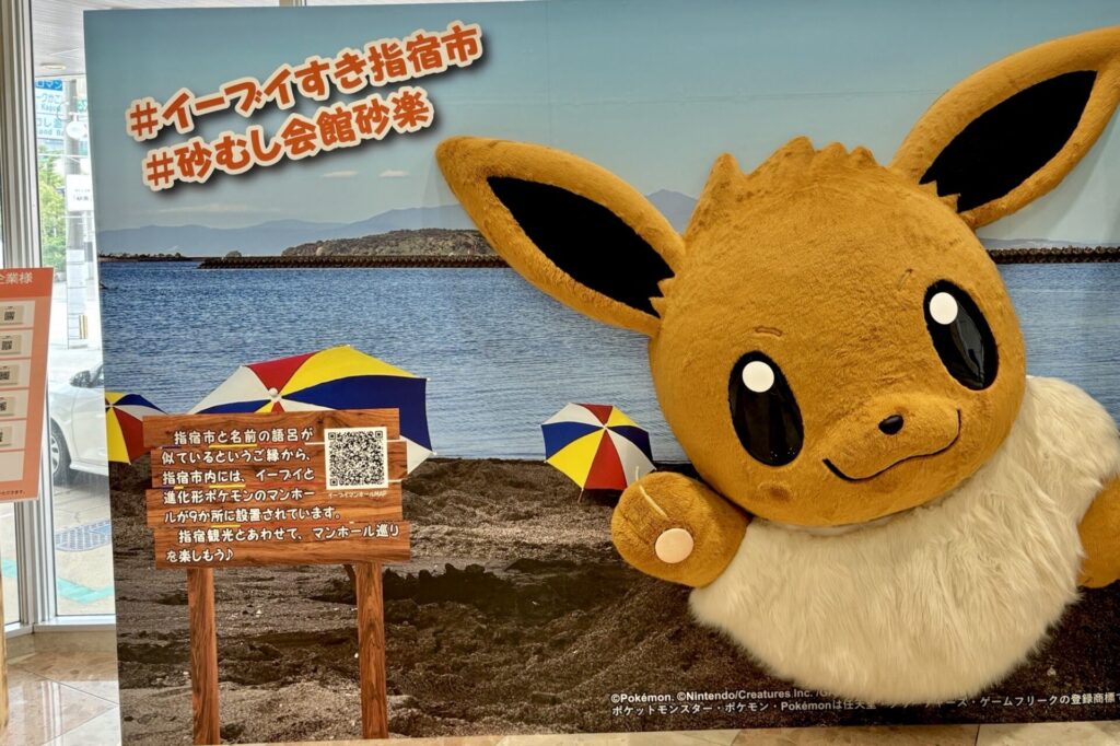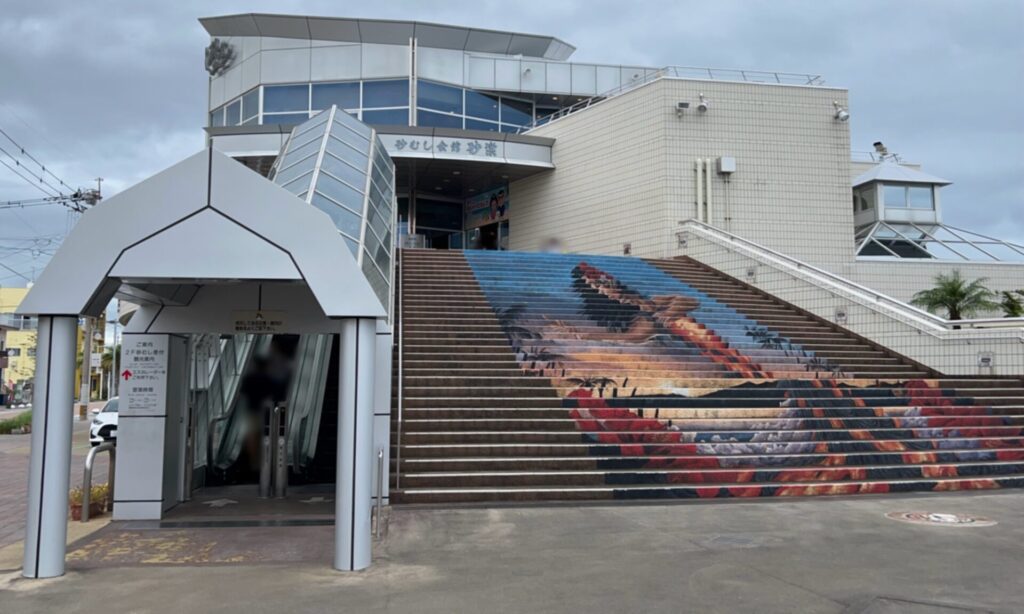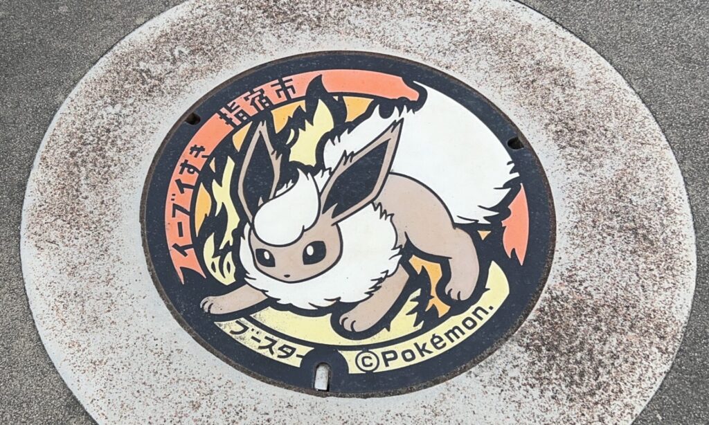 スウ砂楽入口の階段の前には、ポケモンの絵柄をあしらったマンホール「ポケふた」が設置されています!