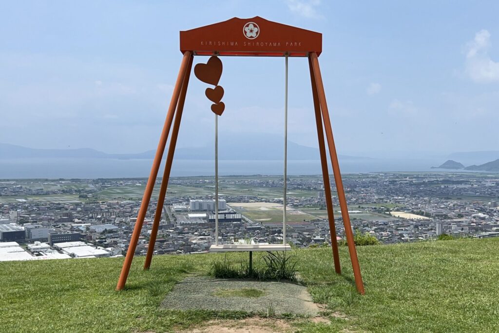 | 概要 | 霧島市の山上にある「城山公園」に設置されたオブジェ。 ブランコからは霧島市の街並みや錦江湾、桜島などが一望できる。 |