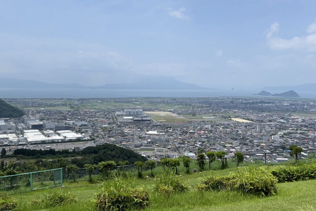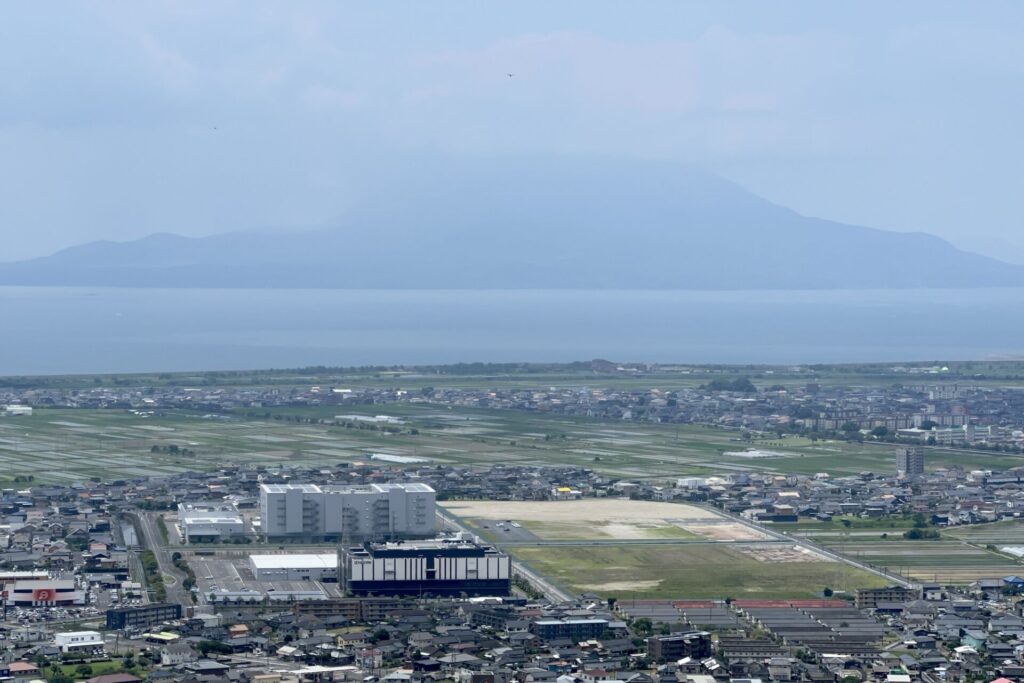 霧島市郊外の街並みや大隅半島、そして錦江湾を挟んで桜島がそびえている様子も見渡せます。