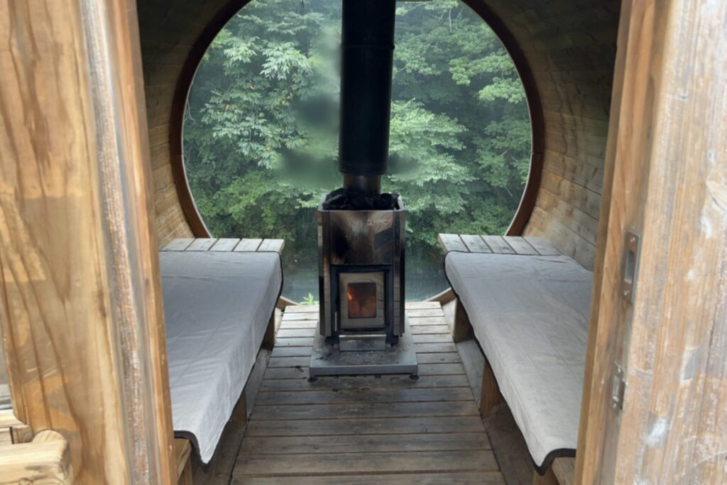 宮崎の杉材を使ってできた「バレルサウナ(樽型のサウナ)」で、効率よく熱が循環する造りとされています。