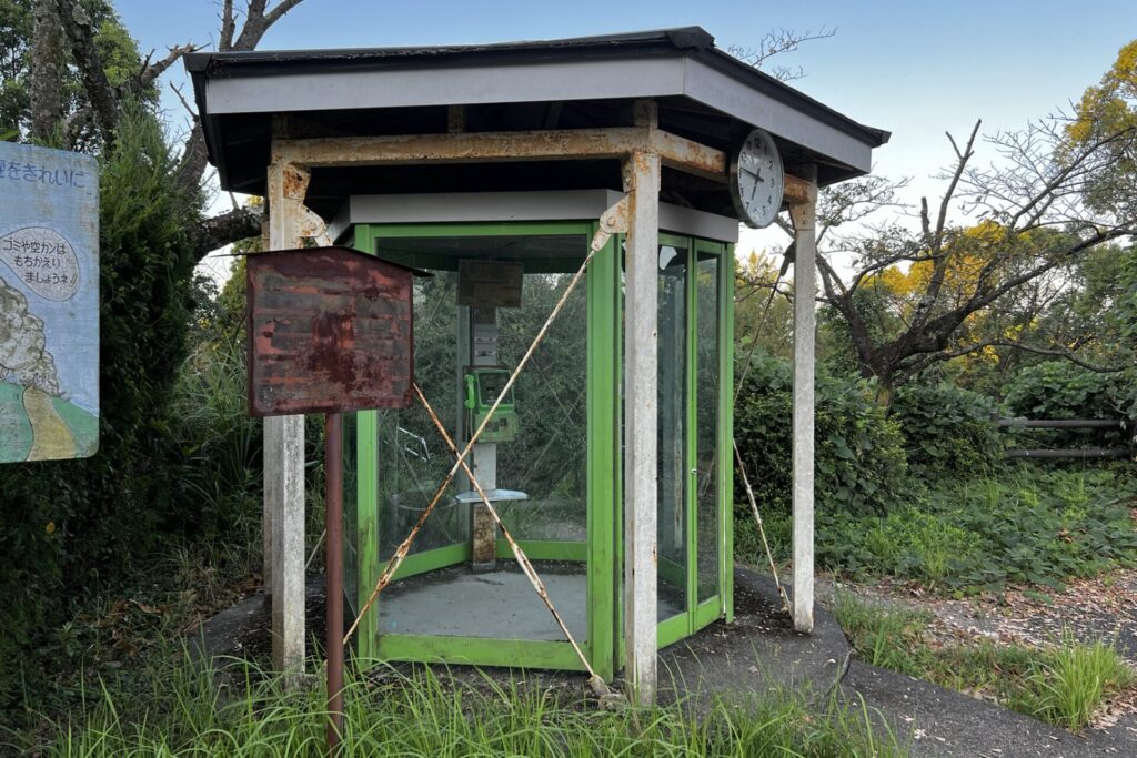 電話ボックスの脇にある階段を上っていくと、東屋が見えてきます。